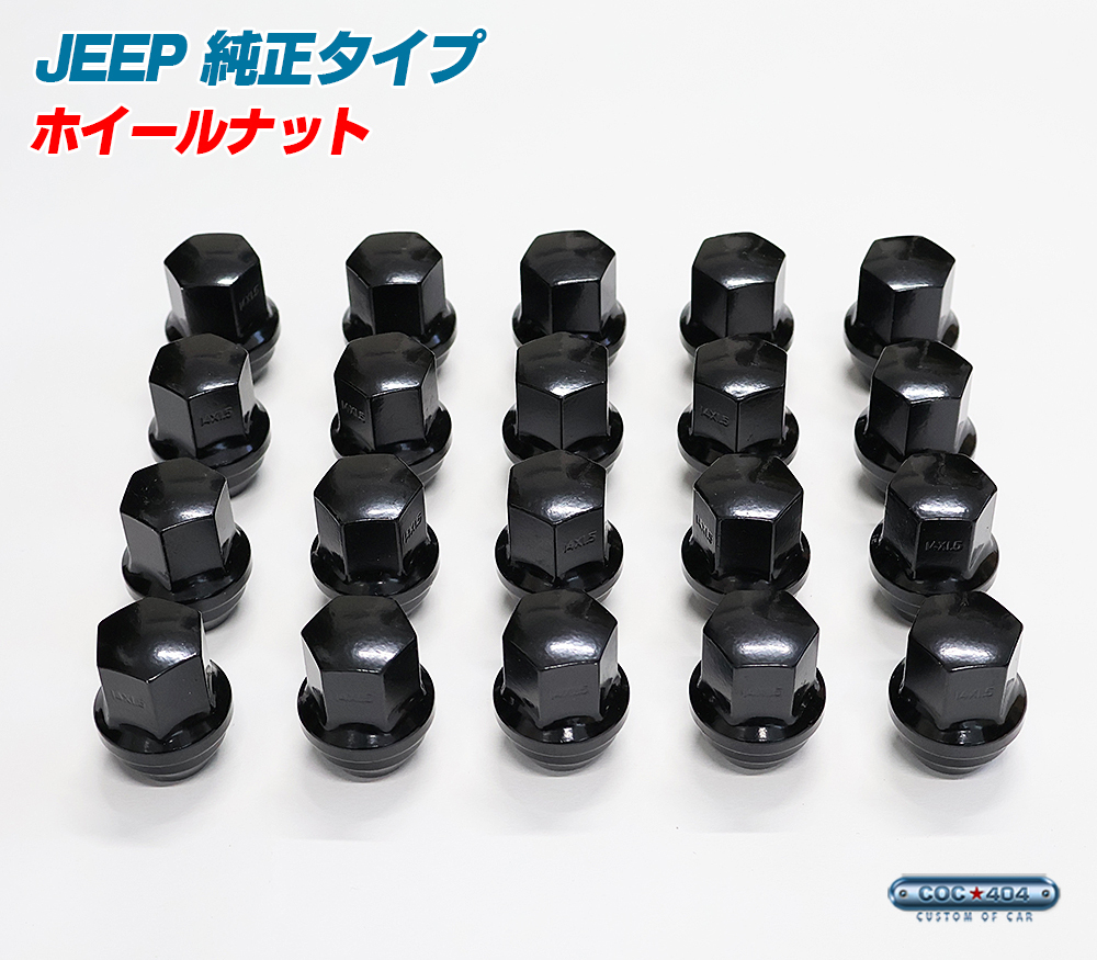 > 純正タイプ ジープ M14×1.5 ソケットサイズ22mm ホイールナット 袋タイプ ブラック 【20個】 ラングラーJL グランドチェロキーWK/WL 等