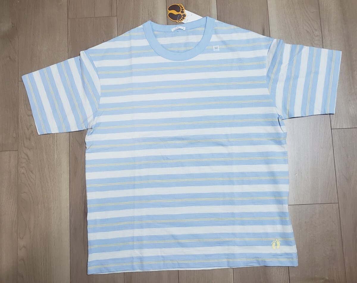 - Mサイズ 新品 Hang Ten ハンテン 足跡刺繍 ボーダービッグTシャツ ブルー ボーダーTシャツ 5分袖 GU ジーユー 綿100 男女兼用 送料無料