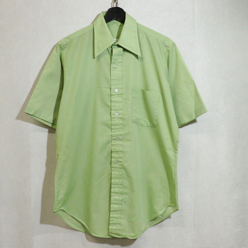 > Z630 70sビンテージ 無地 半袖シャツ■1970年代製 表記15サイズ グリーン アメカジ ストリート サイケ ヒッピー アンティーク 古着卸 LC
