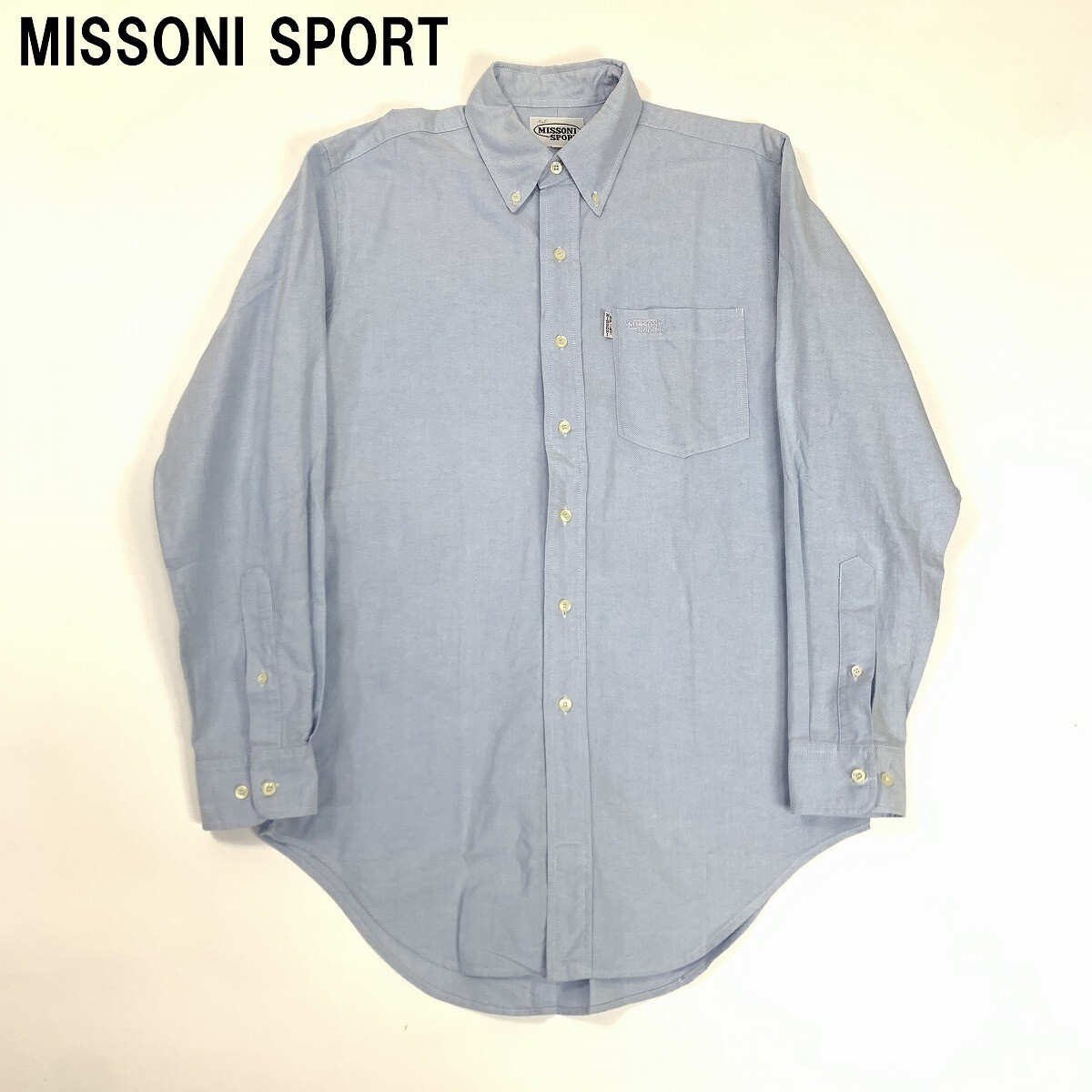 - MISSONI SPORT ミッソーニスポーツ 長袖シャツ 綿 コットン ボタンダウン ワンポイント刺 青 水色 ライトブルー M YC746