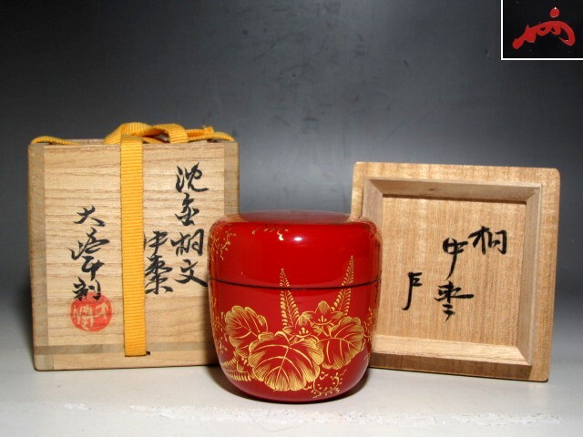 - 前大峰 沈金桐文中棗 表千家即中斎花押☆z580