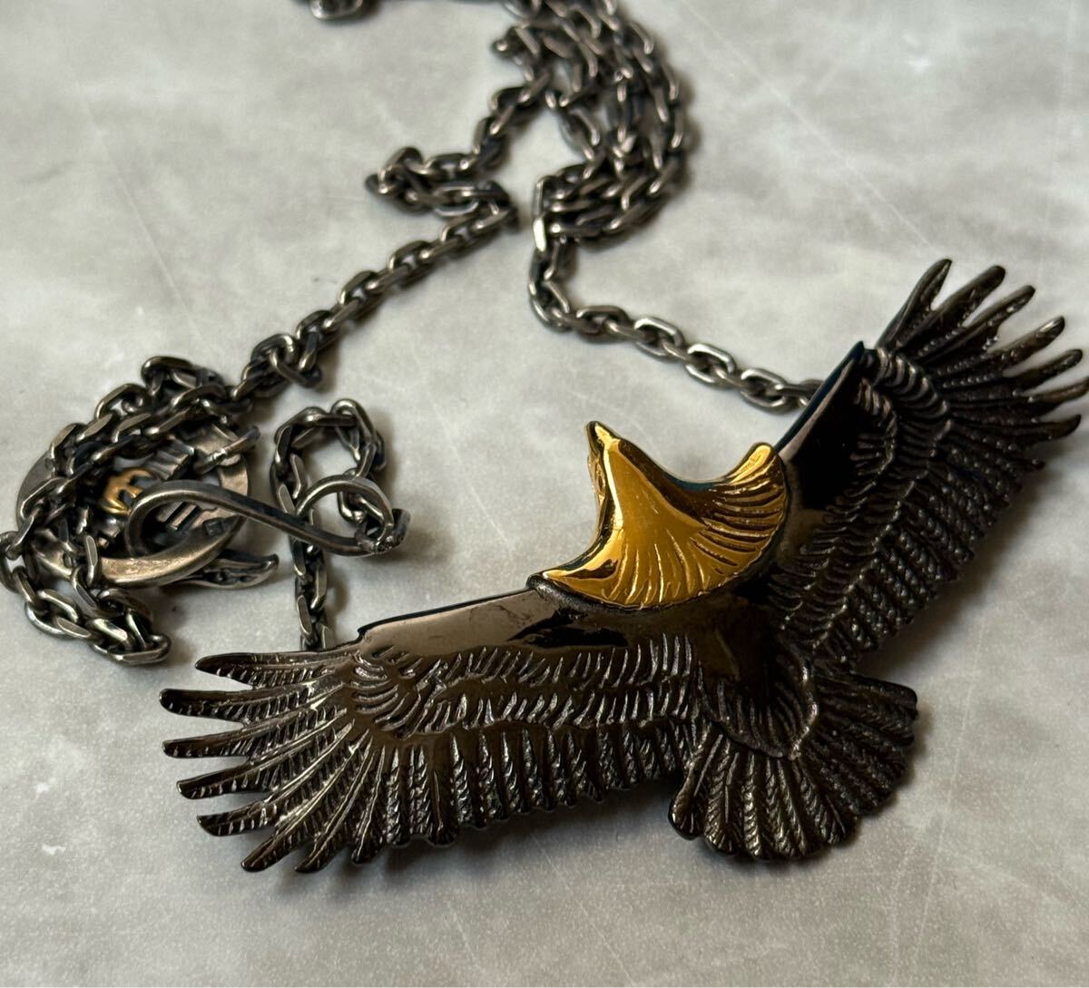 - シルバー925 王道 特大イーグルネックレス シルバー太角チェーン 黒イーグル
