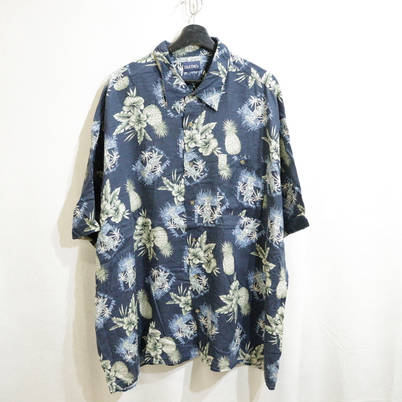> a705 2000年代製 PURITAN ピューリタン 半袖アロハシャツ■00s 約XLサイズ ネイビー 紺 総柄 パイナップル LC アメカジ 古着 古着卸