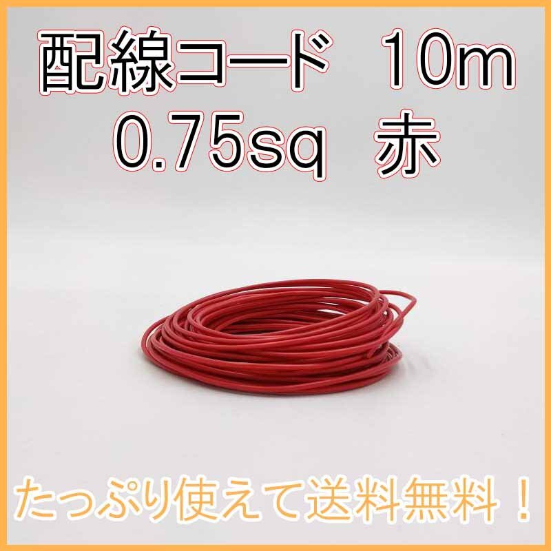 > 0.75sq 赤 10m 自動車用配線コード 送料込み! AV オーディオ ナビ パーツ 電装 コネクタケーブル シングルコード 修理 電線 整備 DIY