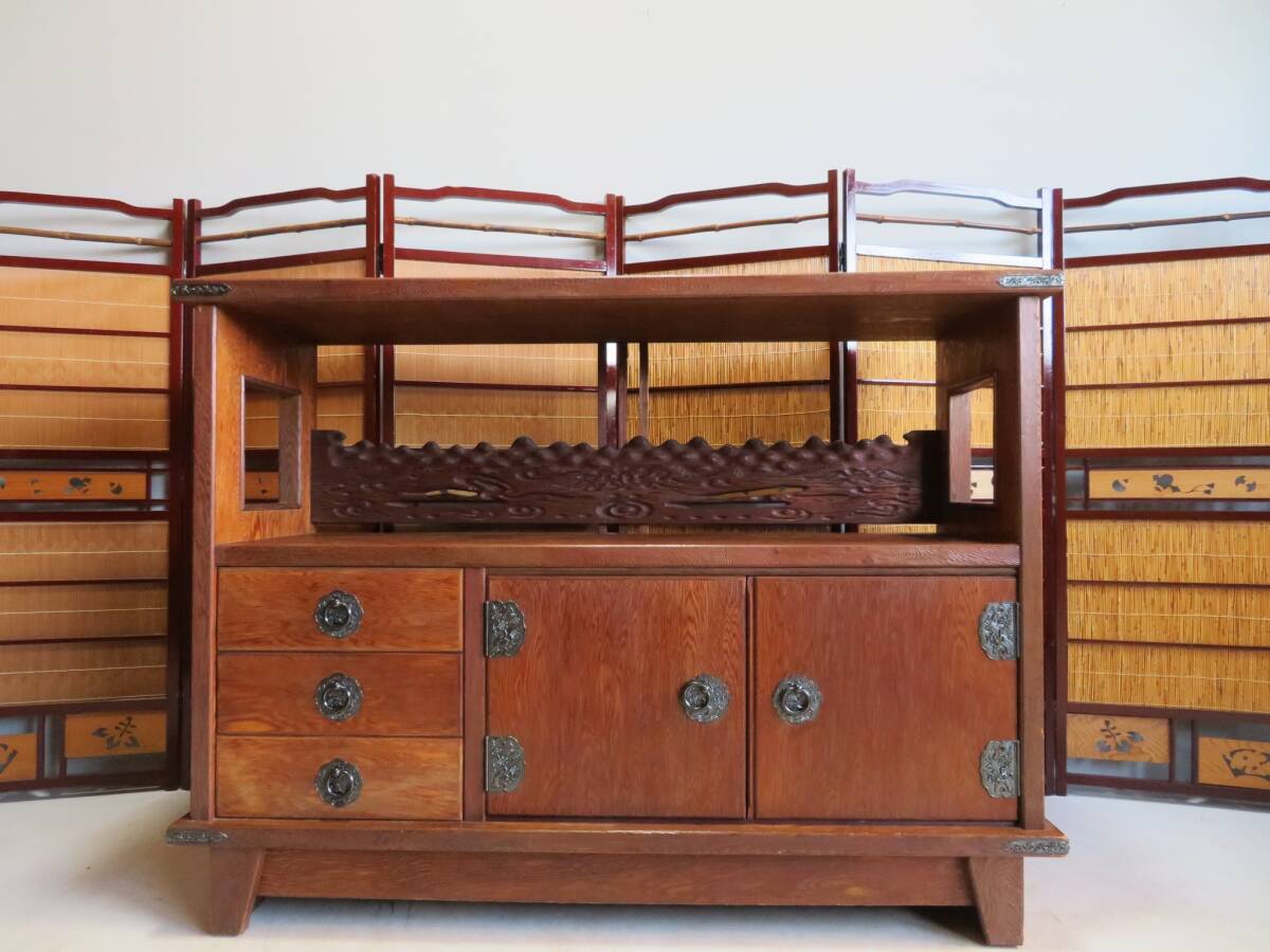 - 世界遺産 屋久杉 浮造り 飾り棚 茶棚 茶箪笥 サイドボード 水屋箪笥 食器棚 漆塗