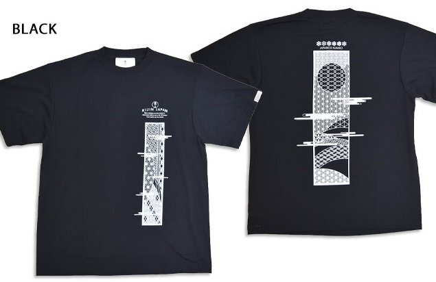 - まるめん組子半袖Tシャツ◆喜人 ブラック XXLサイズ KJ-52017 和柄 和風 吸汗速乾 ドライ きじん