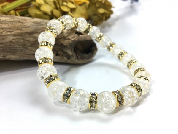 > クラック水晶 パワーストーン ブレスレット 天然石ブレス 10mm メンズ・レディース (ロンデル:ゴールド) 開運 浄化 数珠ブレス♪