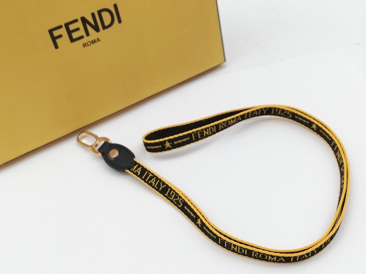 - 未使用 FENDI スマホストラップ ロゴ ブラック イエロー ネックストラップ キーホルダー チャーム モバイルストラップ ショルダー