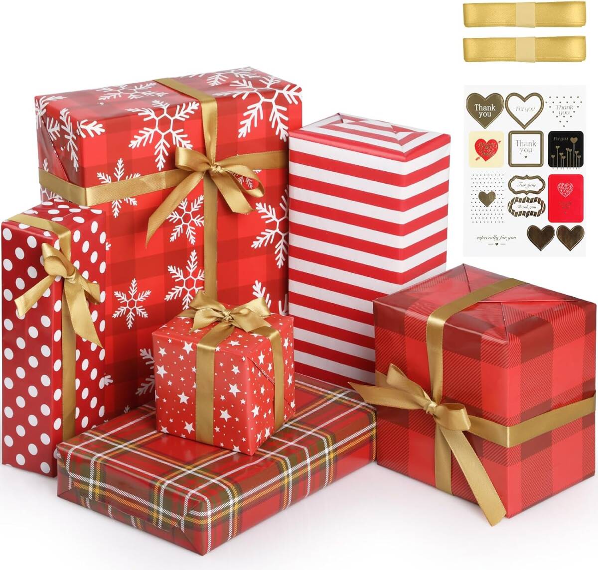 - ラッピングに革命 華やか赤クラフト紙 包装紙 ラッピングペーパー 6枚入り ギフト包装 ラッピング用品 包装資材 50×70cm