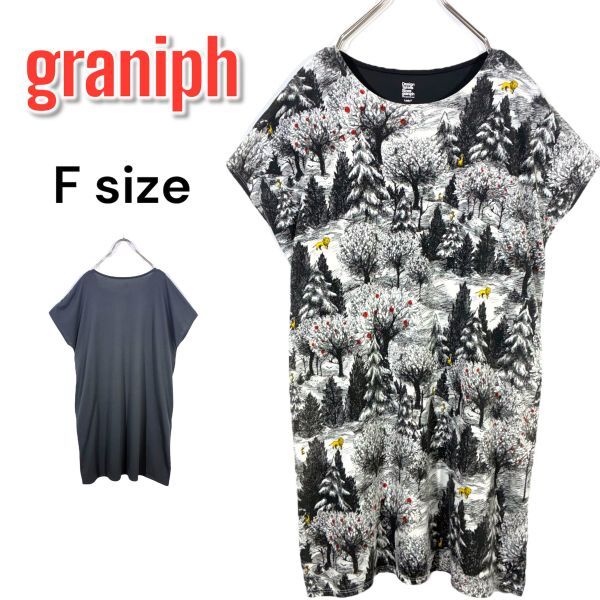 - graniph グラニフ チュニック ワンピース フリーサイズ ノースリーブ 総柄 グレー
