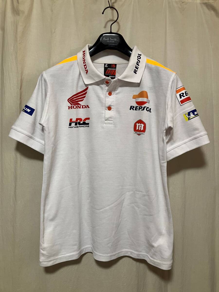 - COMAS HONDA REPSOL HRC Montesa MICHELIN ホンダ レプソル ミシュラン モンテッサ ロゴプリント入り半袖ポロシャツ S 中古品