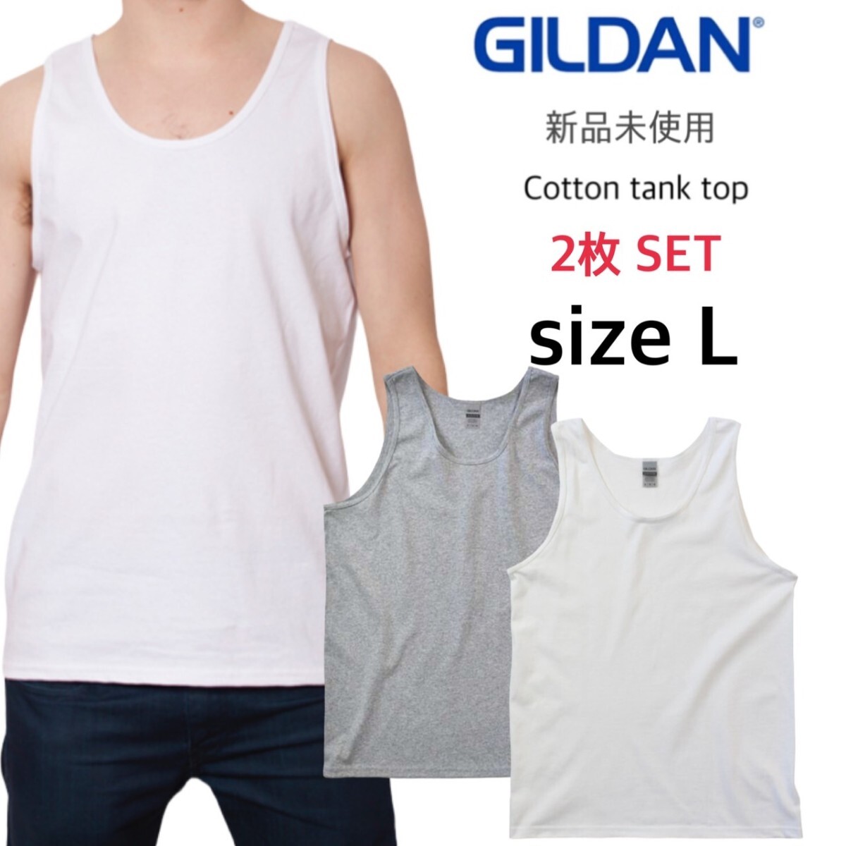 - 新品 ギルダン ウルトラコットン 6.0oz 無地 タンクトップ ホワイト グレー 2枚セット Lサイズ GILDAN 2200
