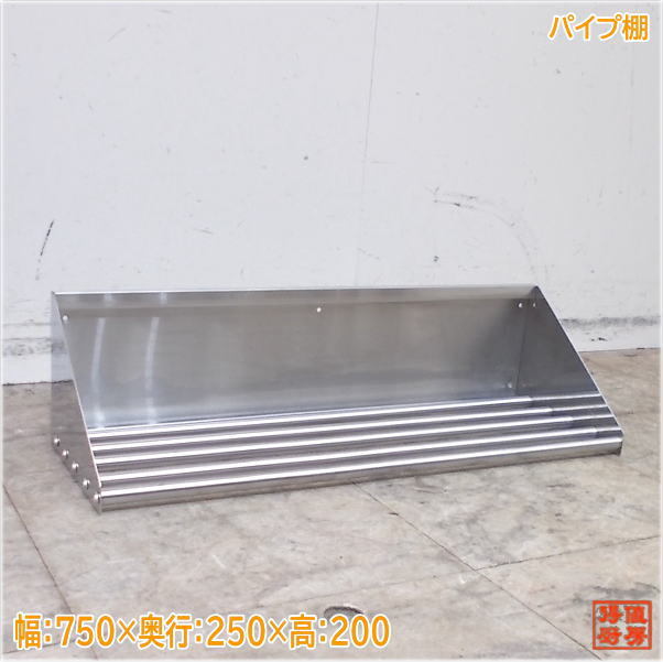 - ステンレス パイプ棚 750×250×200 食器収納棚 中古厨房/25G0912Z
