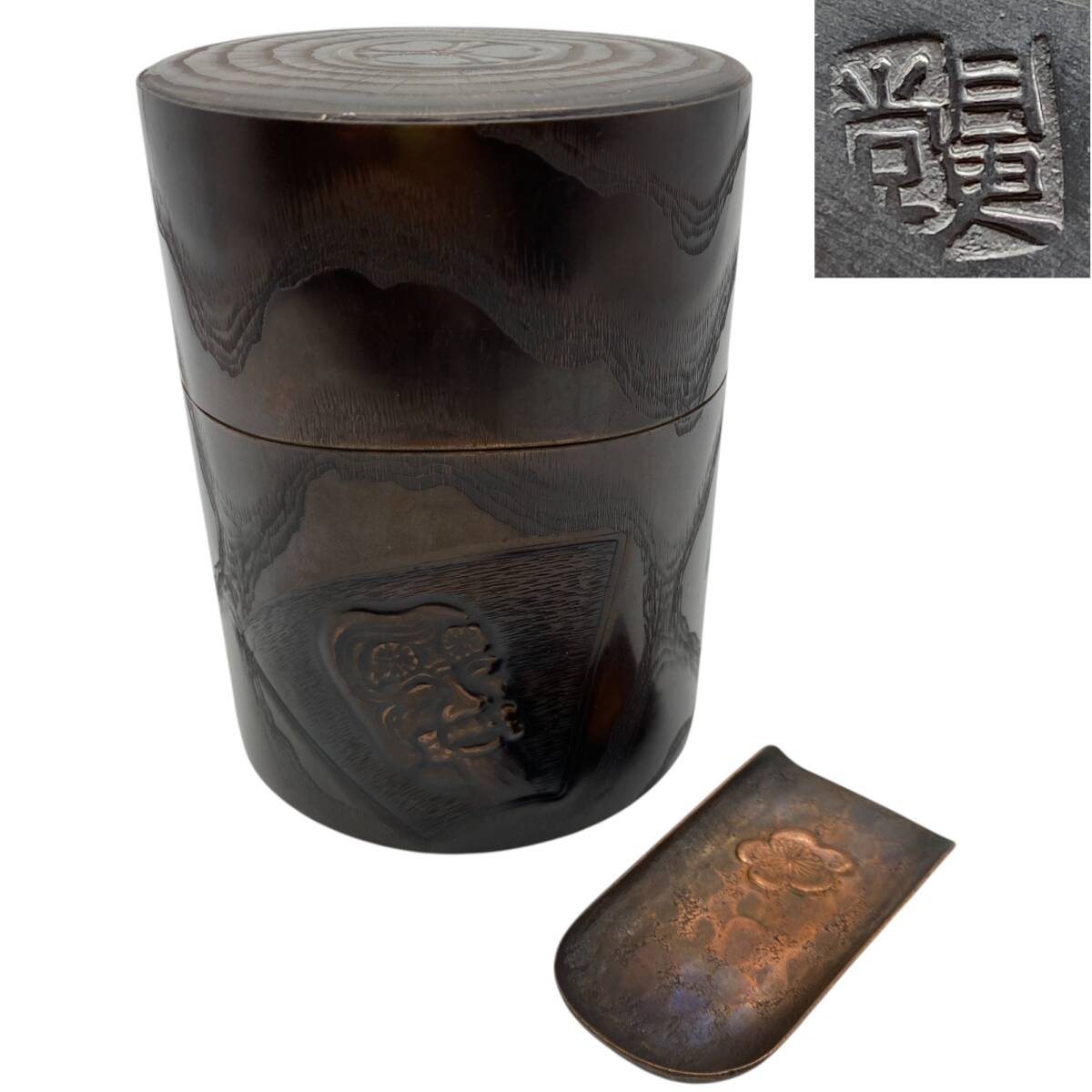 - 月更堂 茶筒 茶匙 木目 翁面 剣片喰 茶道具 茶道 煎茶道具 工芸品 伝統工芸