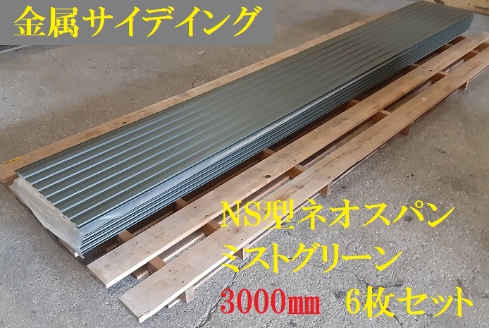 > =引取り限定=【 金属サイディング 】K315「 NS型 ネオスパン 1NG2G04U ミストグリーン 3000㎜ 6枚セット 」 センター