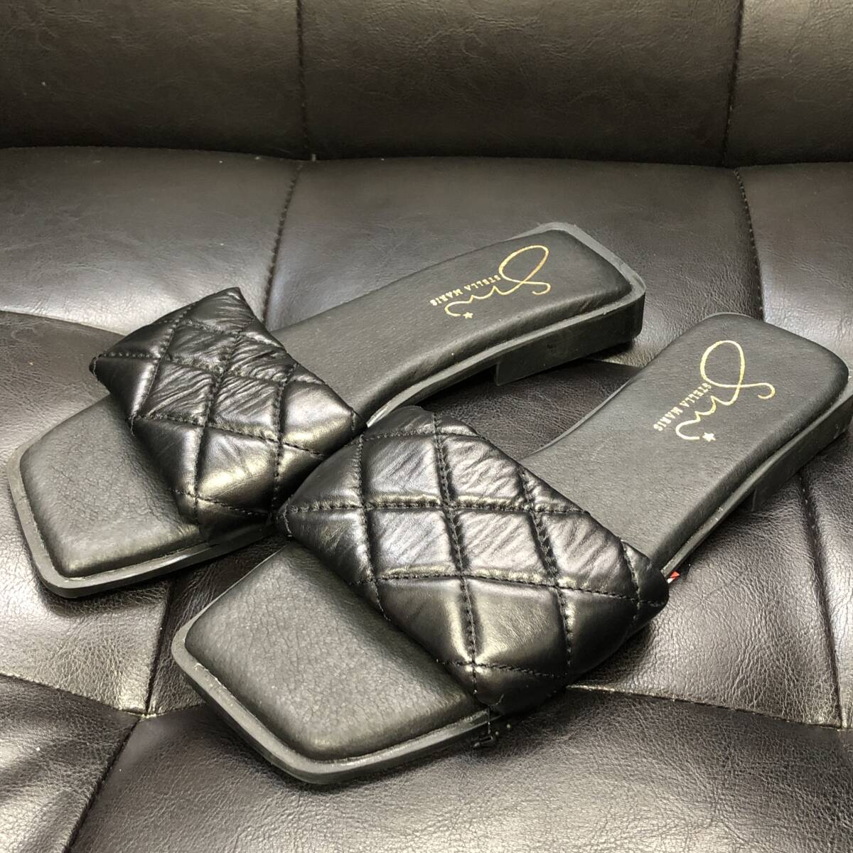 - WQ586●STELLA MARIS:レザーキルティングサンダル ●37● 黒 フラットサンダル ステラマリス