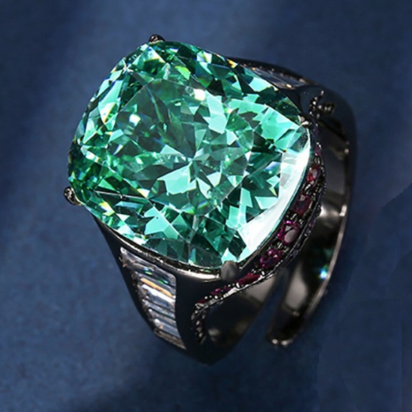 - スパークリング 14*16mm パライバグリーントルマリン ラボダイヤモンドリング、残り時間4日までに最初に入札すると開始価格で購入可能_Kn