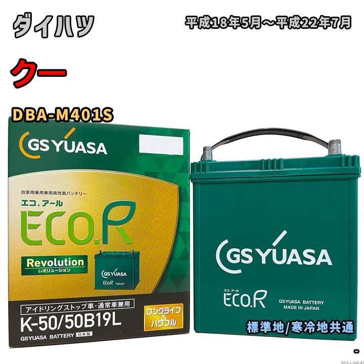 - バッテリー GSユアサ ER-K-50/50B19L ダイハツ クー DBA-M401S 平成18年5月~平成22年7月 キーレス 充電制御車 K-42タイプ 666