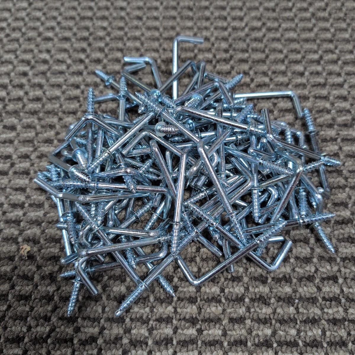 - ジャンク品/長期保管品/メーカー不明/洋折釘/ユニクローム/サイズ38mm/全長L57×21mm/厚T3.8mm/ネジ部19mm/1P100本入り