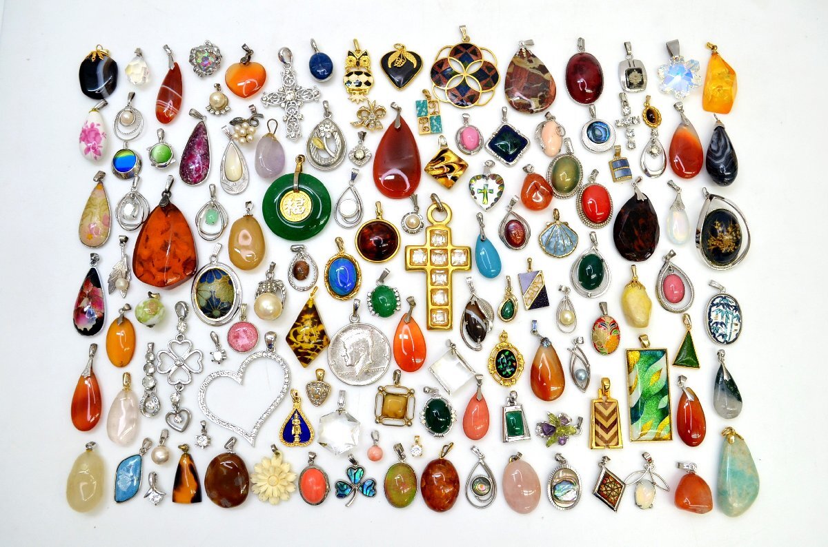 - [fui] ネックレス ペンダントトップ 120点以上 大量 まとめ売り アクセサリー 天然石調 色石 パール ジュエリー調 イミテーション 約540g