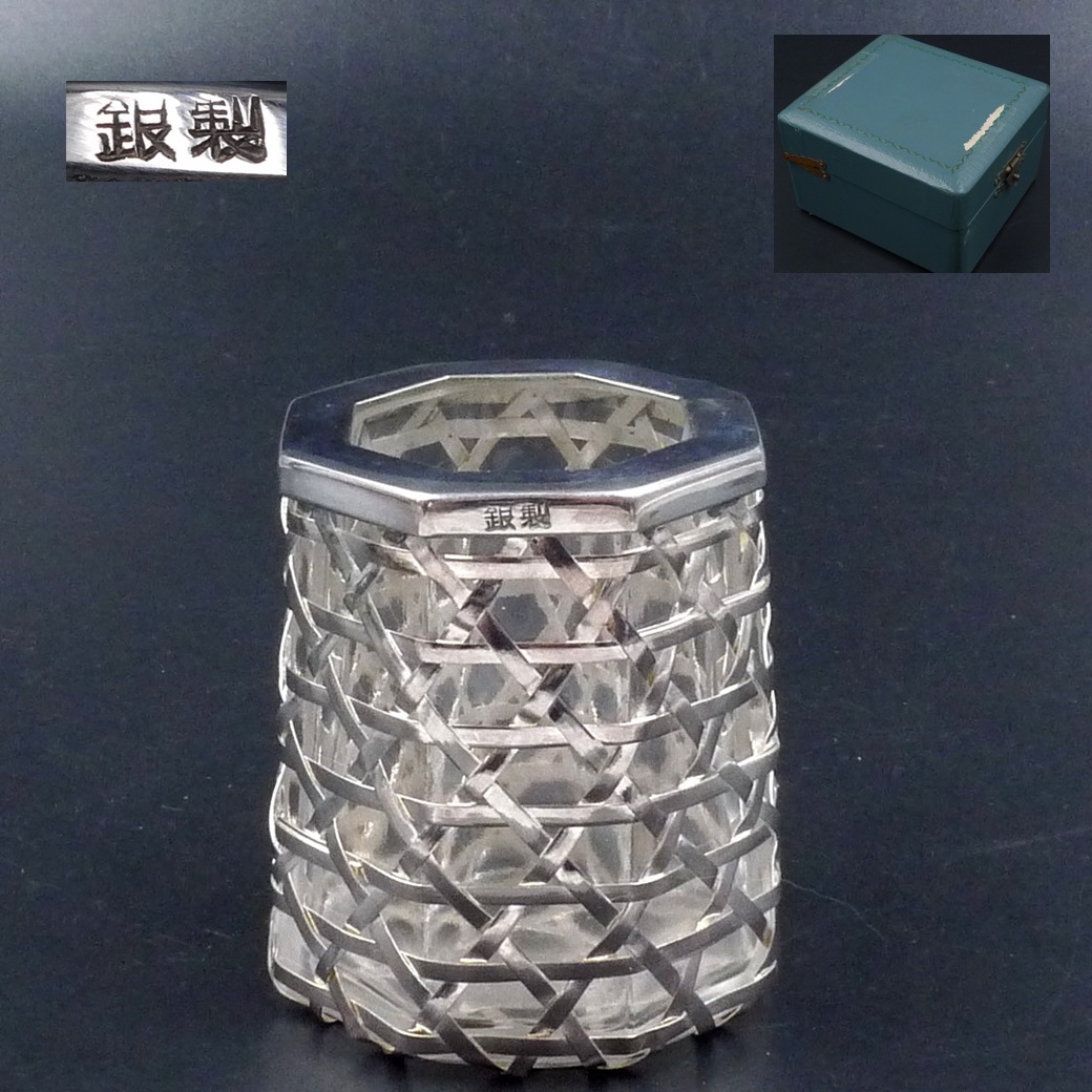 - 美品 昭和レトロ 純銀 極上細工 硝子 楊枝入れ ボトル シルバー ガラス 銀製 検(ボンボニエール 茶道具 煎茶道具 中国 美術品 鉄瓶 急須