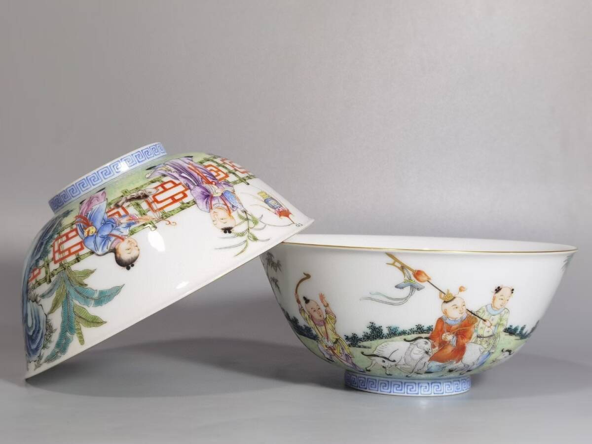 > 7+GV5551「東洋美術」 中国骨董 人間国宝 磁器製品【パステルカラーのボウル2個】 旧物 孤品 珍品 陶磁器 収蔵価値が高い