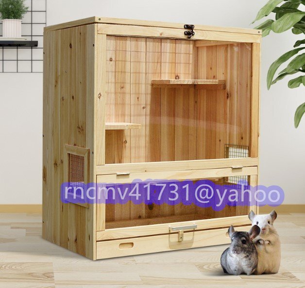- 「81SHOP」爬虫類 小動物 ゴールデンハムスター ハムスターケージ 飼育ケース ケース ハウス 小屋 木製 前開き 透明 通気 組立式 天板開閉