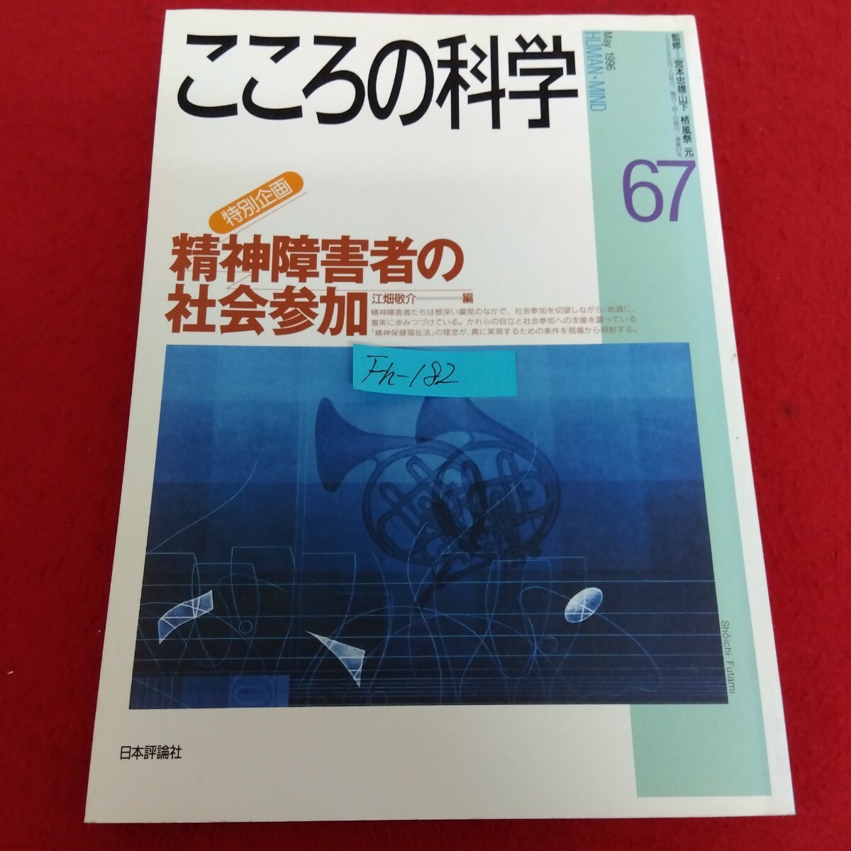 - Fh−182/こころの科学 67 精神障害者の社会参加 監修/宮本忠雄・山下格・風祭元 編者/江畑敬介 1996年5月1日発行/L8/70725