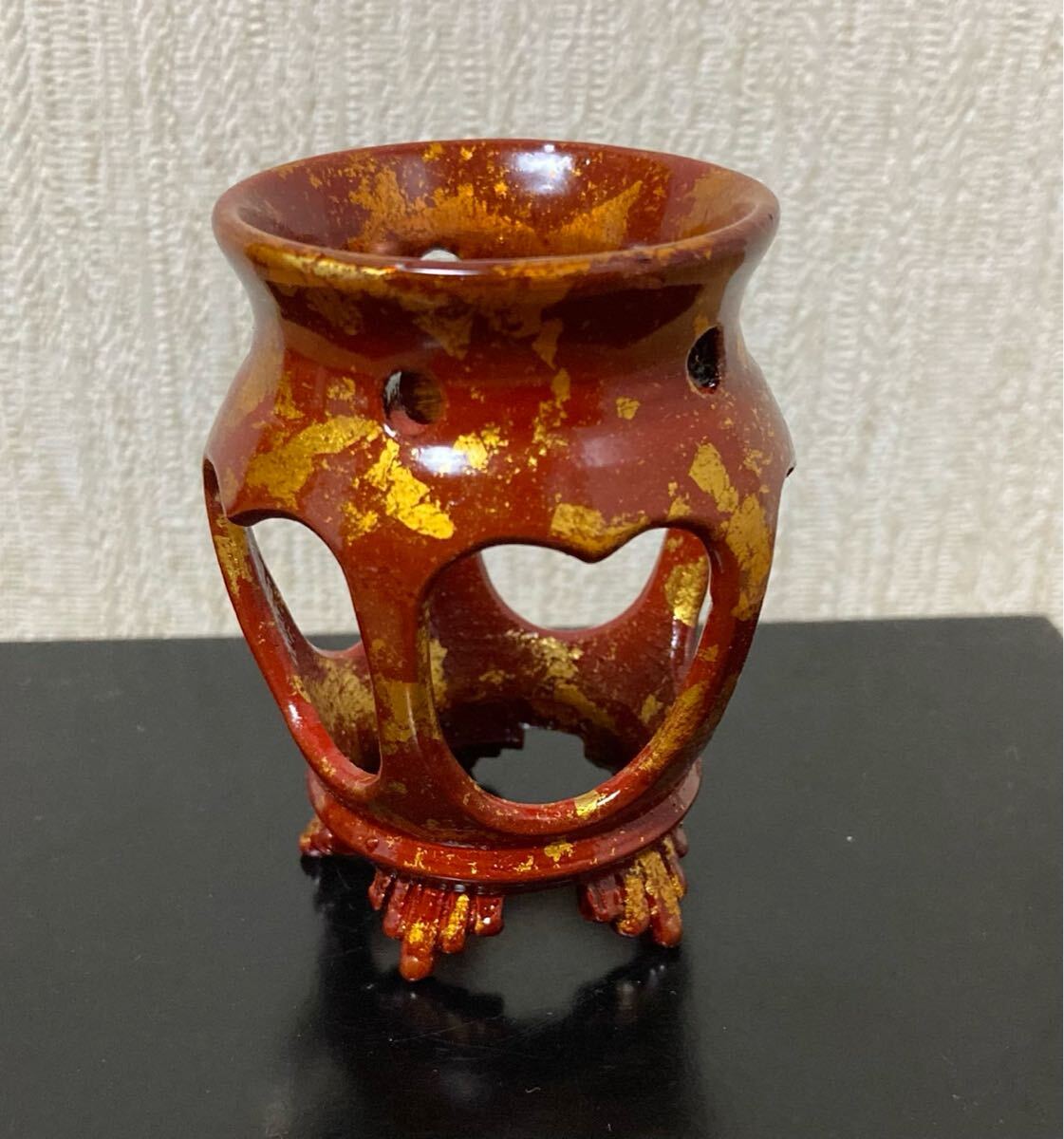 - 前畑 春斎 陶漆 白檀塗 夜学 蓋置 桐箱 共箱 共布 栞つき 茶道具
