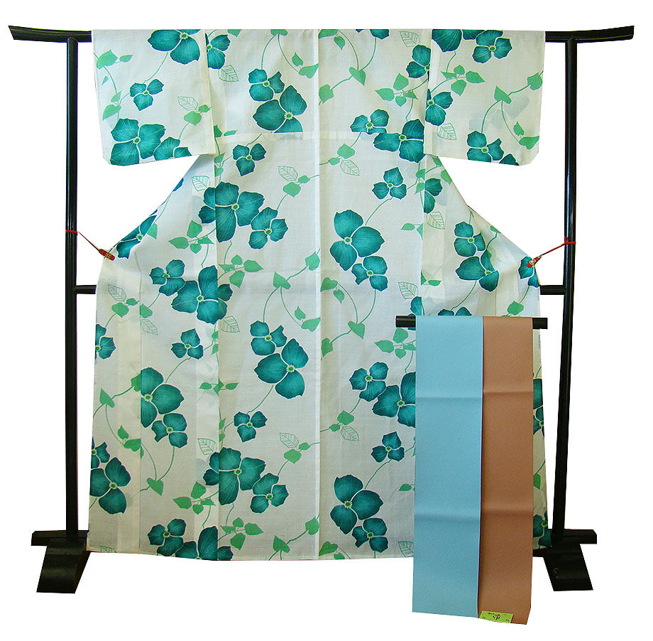 - 時代屋 裄64.4cm 大特価 綿紅梅 浴衣 四寸帯 2点 セット 綿 ポリエステル 仕立上り 150cm~156cm Ym159