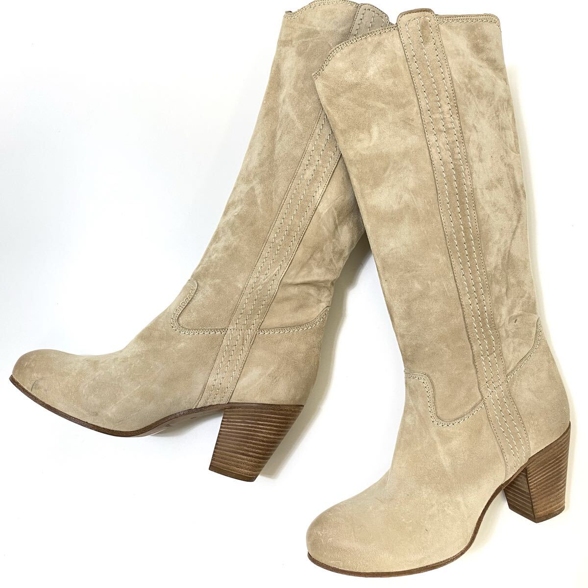 - ★イタリア製 AnnaRita N スエードレザー ロングブーツ ベージュ サイズ38 ◆ ヒール高7cm ジッパーレス アンナリタ エンネ ◆D3 LMPち3-16
