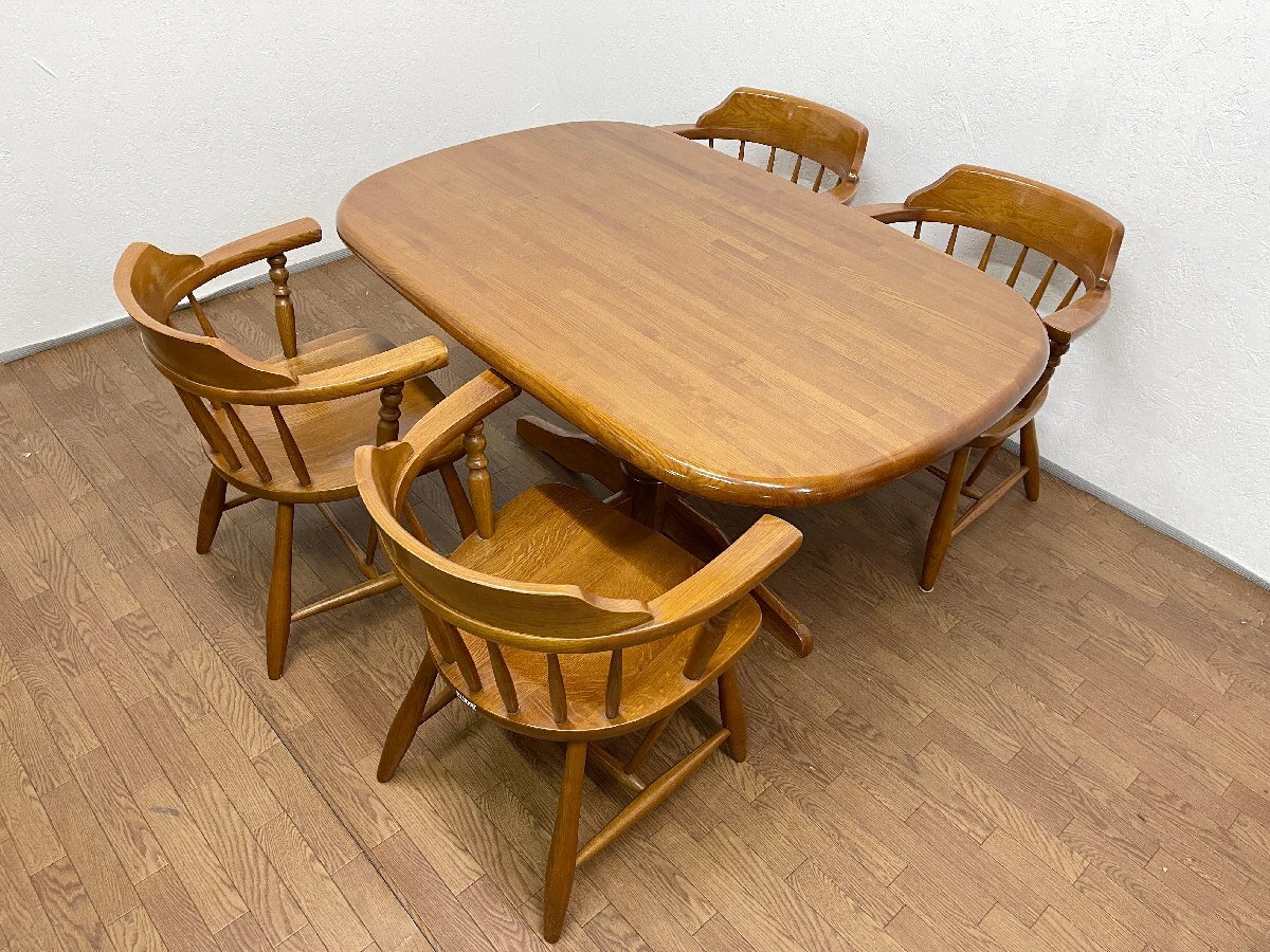 > ●柏木工 KASHIWA ダイニング5点セット ダイニングテーブル クラウンチェア ウィンザーチェア4脚 4人用 天然木 ナラ材 ナチュラル (貝1141)