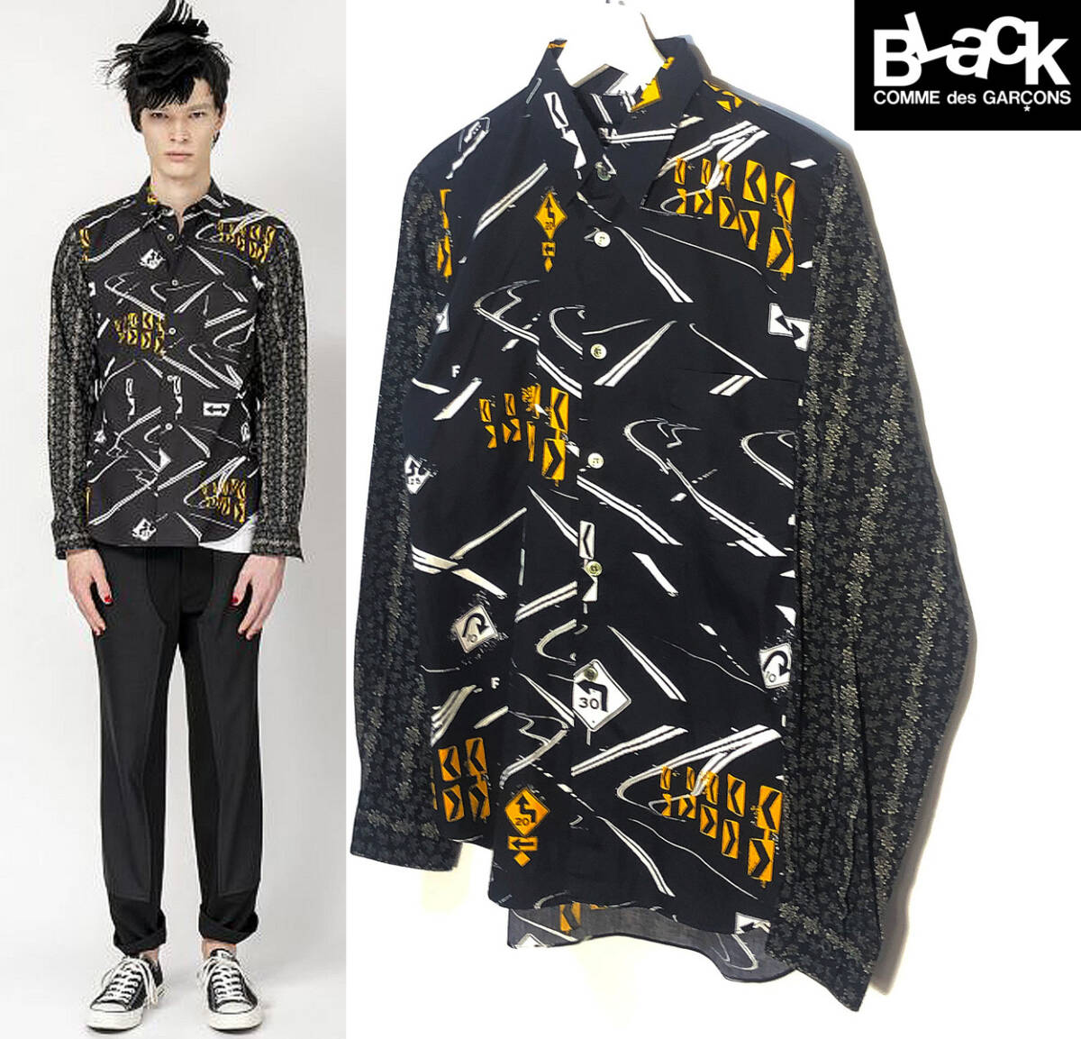 - 1円~ランウェイ着用/ビッグサイズ■20S/S ブラックコムデギャルソン 長袖切替シャツ■Mサイズ■BLACK COMME des GARCONS L/S-Shirts■