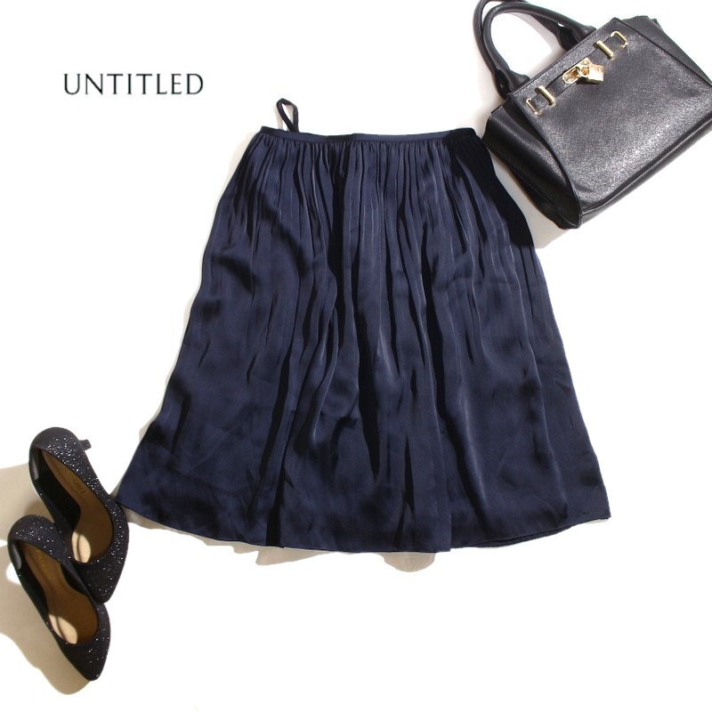 - 美品 アンタイトル UNTITLED 株) ワールド 春 夏 薄手 涼し気 オーガンジー サテン シフォン フレアスカート 1 ネイビー 紺 7号 スカート