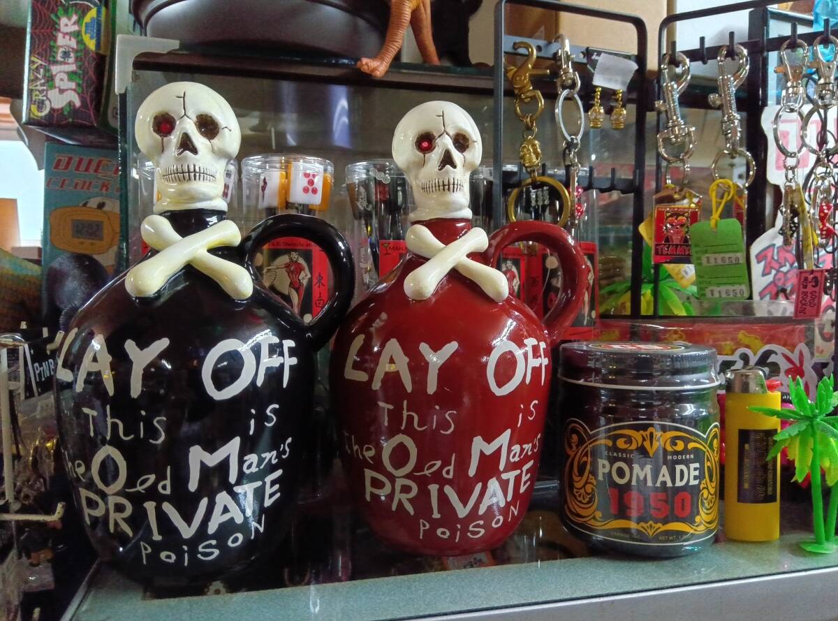- 2個セット!黒&バーガンディー色グッドロッキンポイズンボトルバンク!スカルバンク貯金箱検索用ビンテージ50S昭和レトロガイコツ髑髏