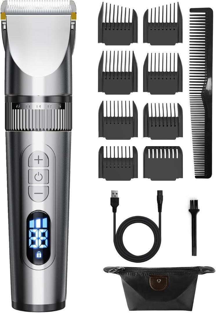 - バリカン【2024新登場 USB充電式】ヘアカッター メンズ 電動ばりかん 散髪用 自動研磨 プロ仕様 0.8-26mm対応 LEDディスプレイ 2段階モード