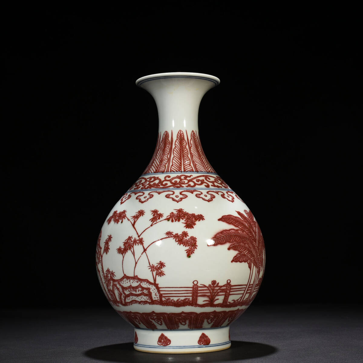 - ■TM165■大清乾隆年制款 釉里紅竹石芭蕉紋玉壺春瓶 時代物 古玩 唐物 古陶磁器■