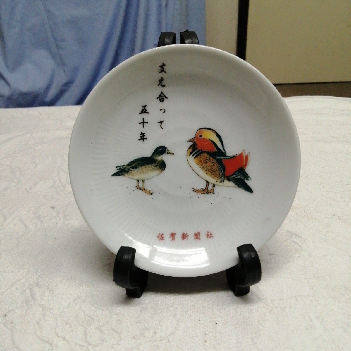 - オシドリ 鴨 カモ 鳥 支え合って50年 飾皿 可愛い 絵皿 飾皿 飾り皿