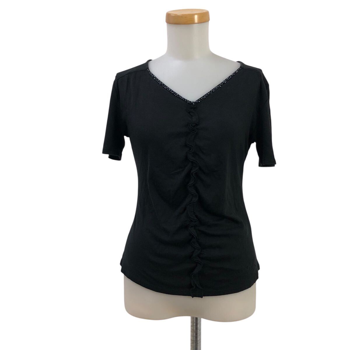 > NC313-68 EVEX by KRIZIA エヴェックス バイ クリッツィア ビジュー シルク Tシャツ ティシャツ トップス カットソー レディース 40 黒