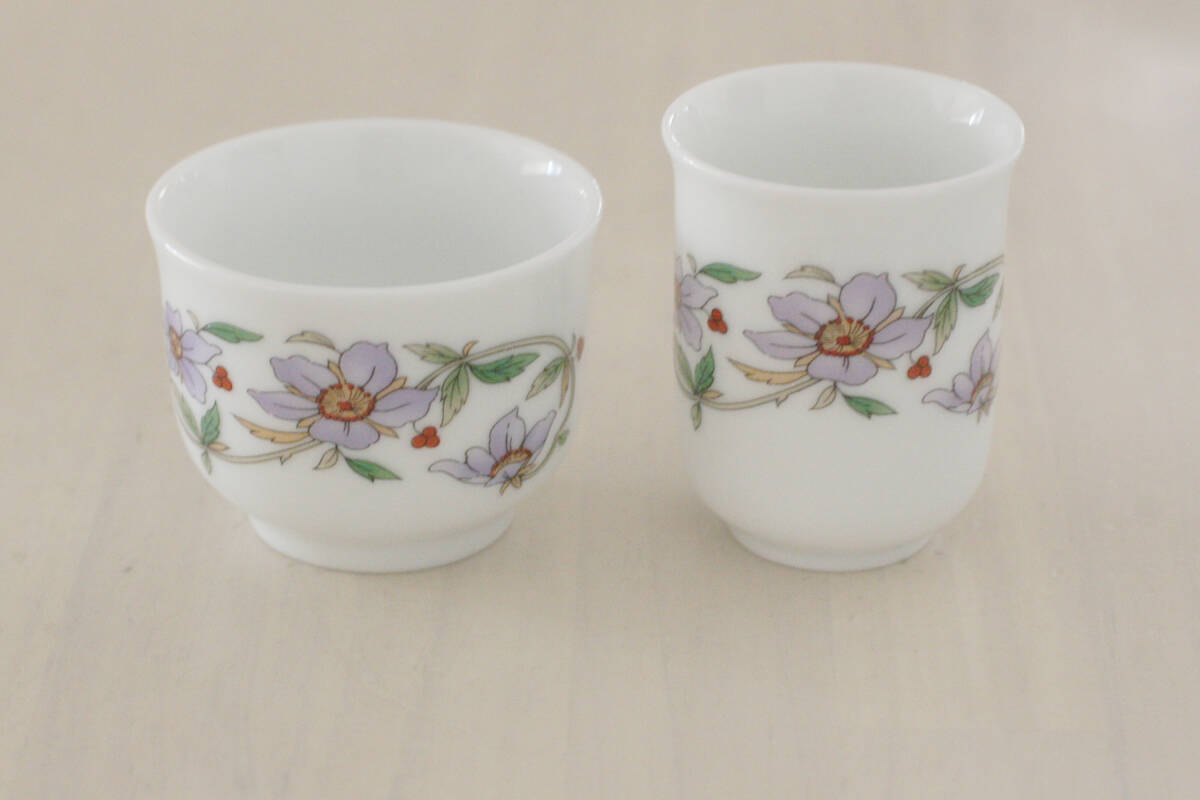 - 1セット 聞香杯と茶杯のセット 中国茶器 茶杯 花柄 クレマチス 中国茶器 茶道具