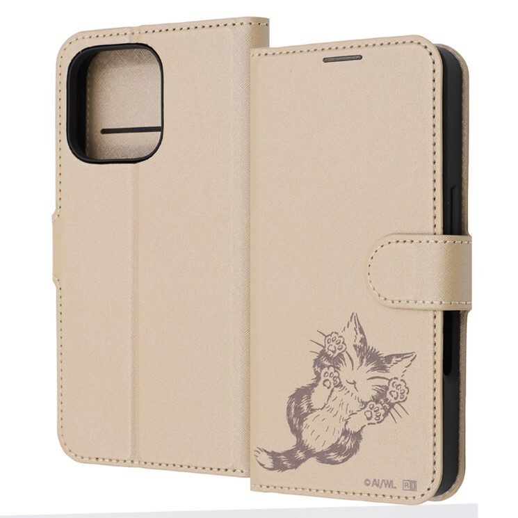 - iPhone16Pro ケース 手帳型 猫のダヤン ベージュ 肉球 WACHIFIELD PUレザー スマホ カバー シンプル 衝撃吸収 アイフォン アイホン