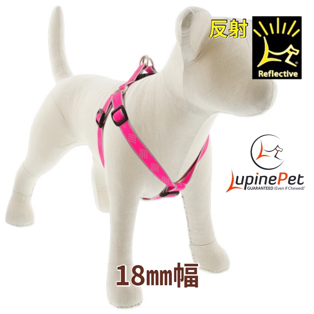 - ステップインハーネス・Lサイズ 18mm幅 リフレクティブ反射・ピンクダイヤモンド柄 50-76cm LUPINEルパイン アメリカ製 軽量丈夫