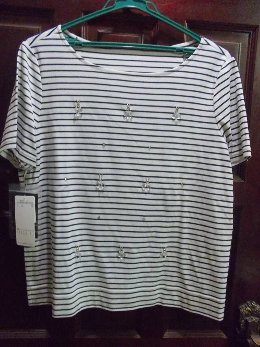 > 大きいサイズ レリアン サイズ13+ 白紺色 ストライプ柄 カットソー 新品 未使用品