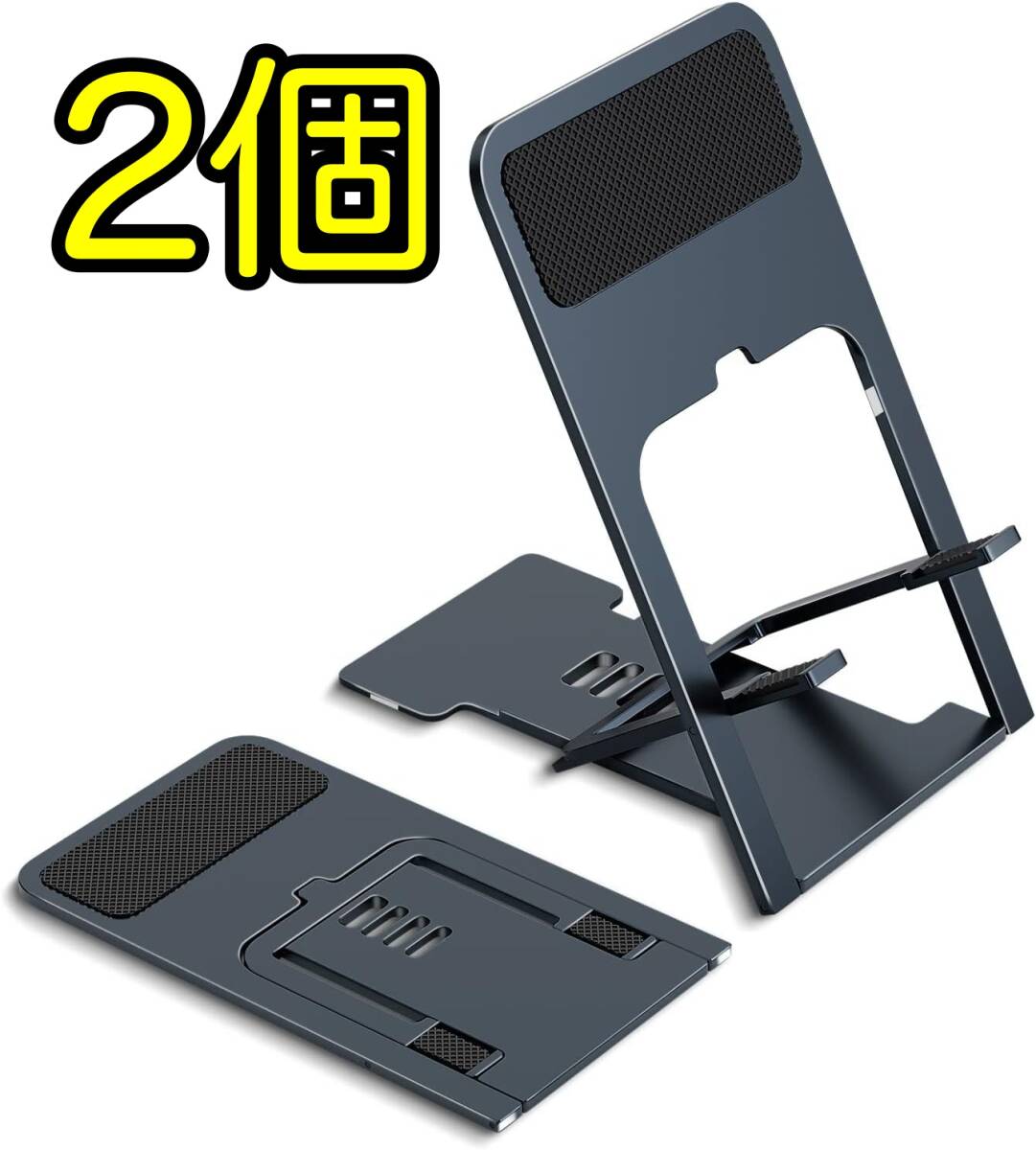 > (数量2個!)neriken スマホスタンド 卓上 携帯スタンド 4段階 角度調整 フラット 折りたたみ タブレット スタンド (ダークシルバー)