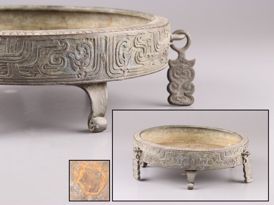 - 中国古玩 唐物 古銅造 水盤 時代物 極上品 初だし品 D3956