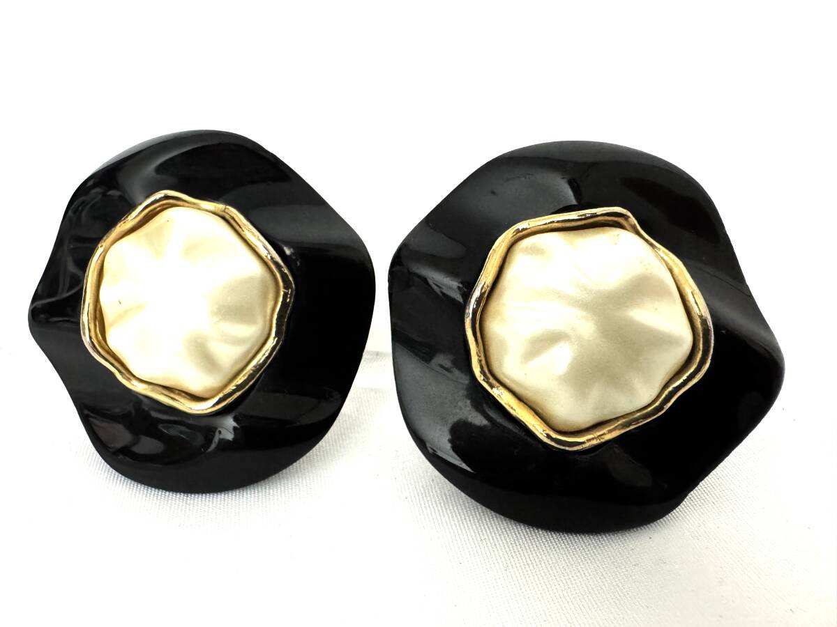 - 7G2707 【本物保証】シャネル イヤリング 特大 ブラック ゴールド フェイク パール 25 vintage CHANEL