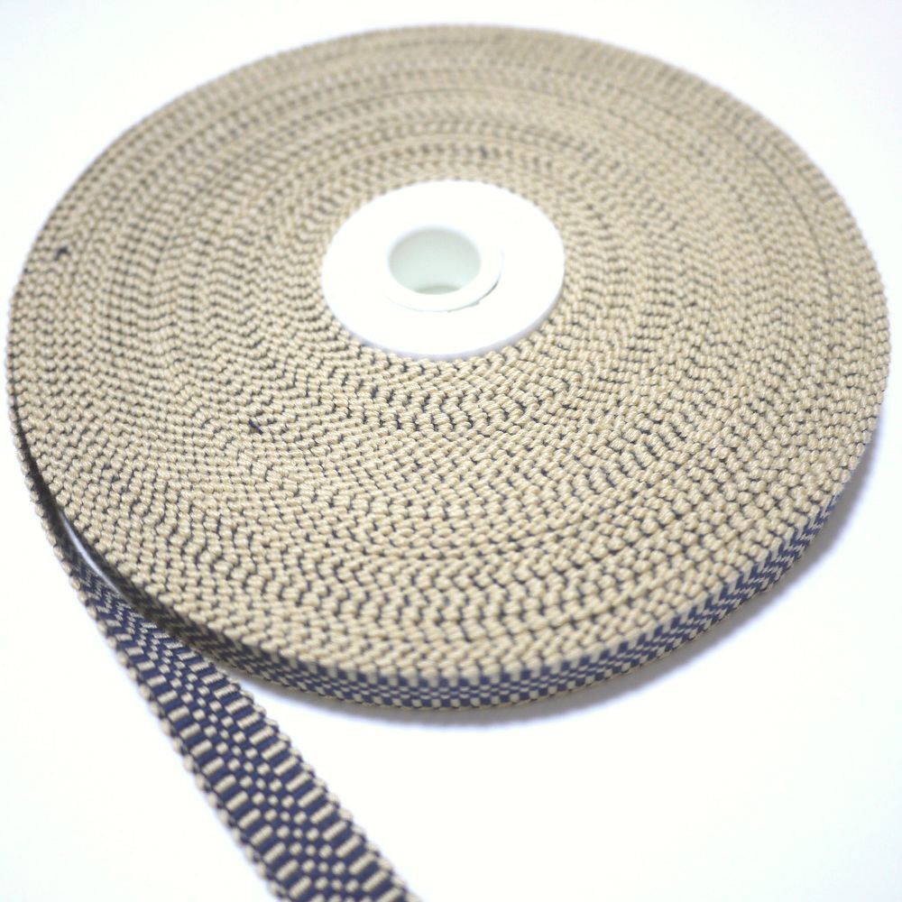 - 匿名発送★04-11-15)国内産 木綿 真田紐 綿100% 四分巾 平紐 ベージュ×紺 市松文様 15m Samurai ribbon(Sanadahimo)