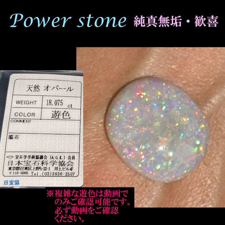 > ◆超極上!◆動画有★大粒18.075Ctマルチカラーマイクロハニカム星の輝きの遊色★鑑定済天然オパール◆ルース/宝石◆エチオピア産/opal指輪