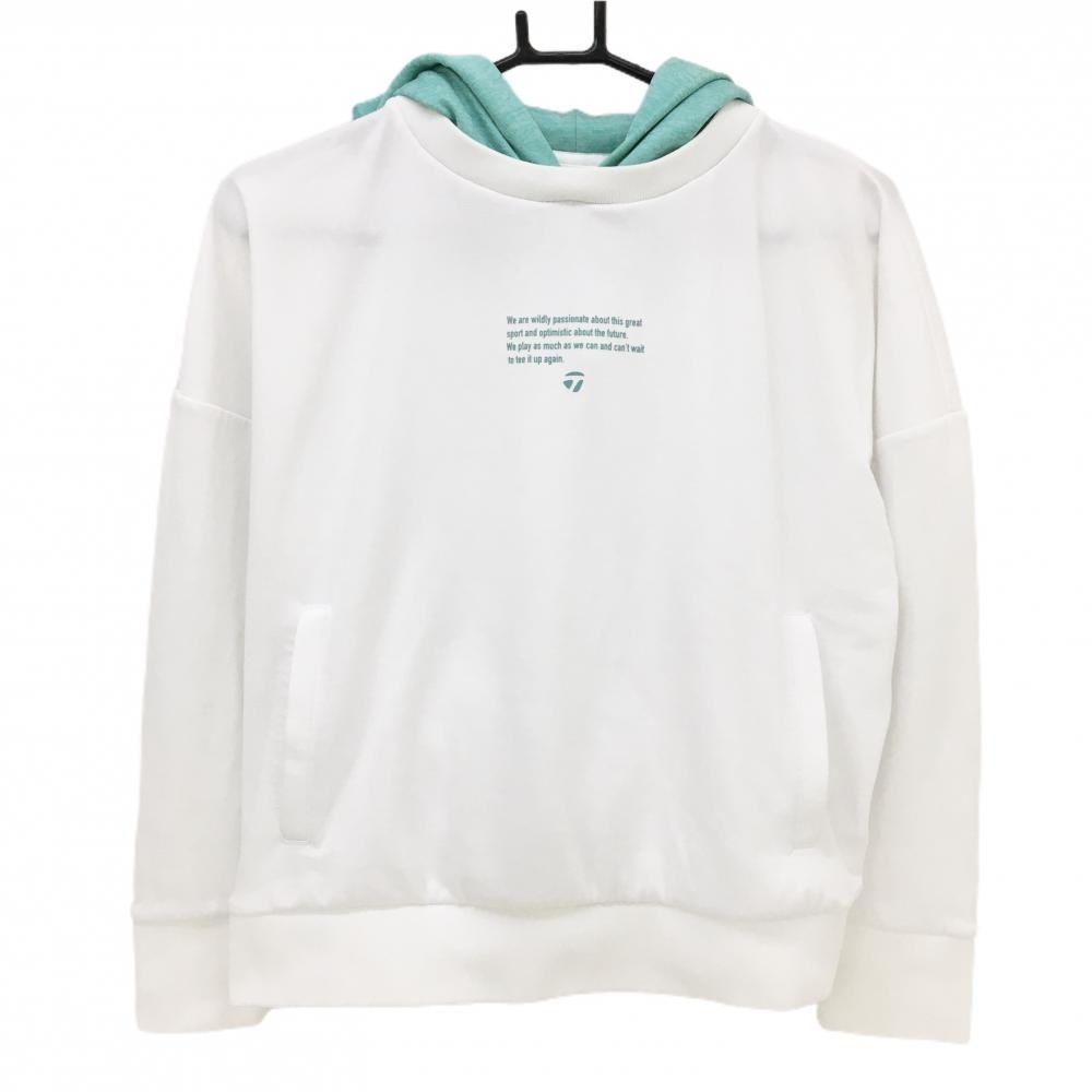 - 【美品】テーラーメイド フード付トレーナー 白×ライトグリーン フロントロゴ レディース L ゴルフウェア 2024年モデル TaylorMade