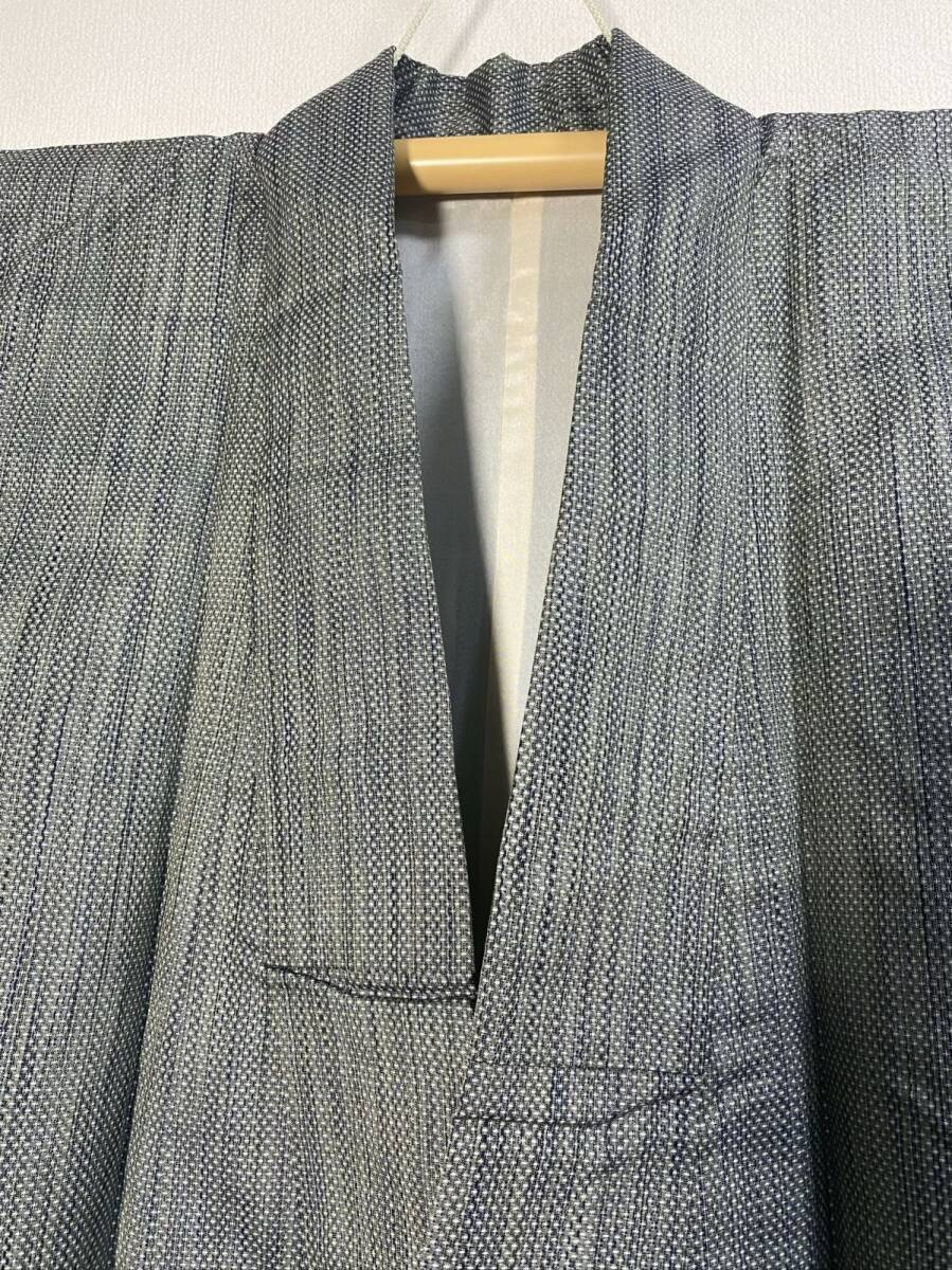 - 男性用 薄灰色 袷 和装 和服 アンティーク リメイク 身丈 149 裄丈 61cm 着物(10880)